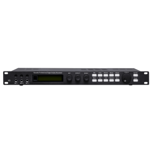 2.具有音箱处理器功能的卡拉OK效果器,每部分功能都独立可调。采用24 bit数据总线和32 bit DSP MUSIC输入通道设有13段参量均衡。MIC输入通道设有15段参量均衡。主输出、中置输出、后置输出及超低音均设有5段参量均衡;麦克风有4级反馈抑制,并可选择OFF/ON。可存储16种模式;